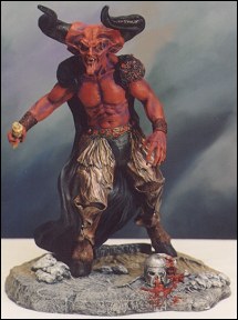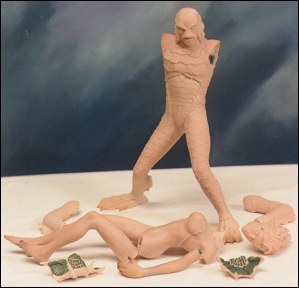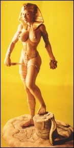 Darkness was sculpted by John Cole, this kit has 4 pieces. Evil Ash was also sculpted by John Cole, this kit has 8 pieces. The Nile Princess was sculpted by Mark Vantine, this kit has 8 pieces. The Paramour kit was sculpted by John Cole and Sam Greenwell, this kit has 11 pieces. (The feet and hands have been resculpted on the girl since the photo shown here was taken). The Freebooter, Conan the barbarian in a sword fight with a zombie barbarian, was sculpted by John Cole (no photo is available at this time).