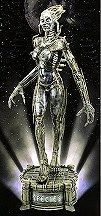complete with base and a sculpted version of the "Woman from the Stars" - who