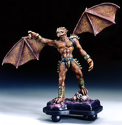This 13.5" tall solid resin kit, has a 21.5" wing span and skull base for mounting. This kit is limited to 250 casting and comes with a signed collectors certificate. The package includes figure, base, instructions, and full color box art! (wooden pedestal not included) Price is $120 plus shipping. Payment can be made by money order or any major credit card. Model Society can be reached at: